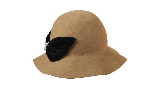 100%純羊毛的帽子,溫暖的駝色,簡(jiǎn)約的造型,配以一只黑色大蝴蝶結(jié),時(shí)尚而別致。漁夫帽,盆帽。